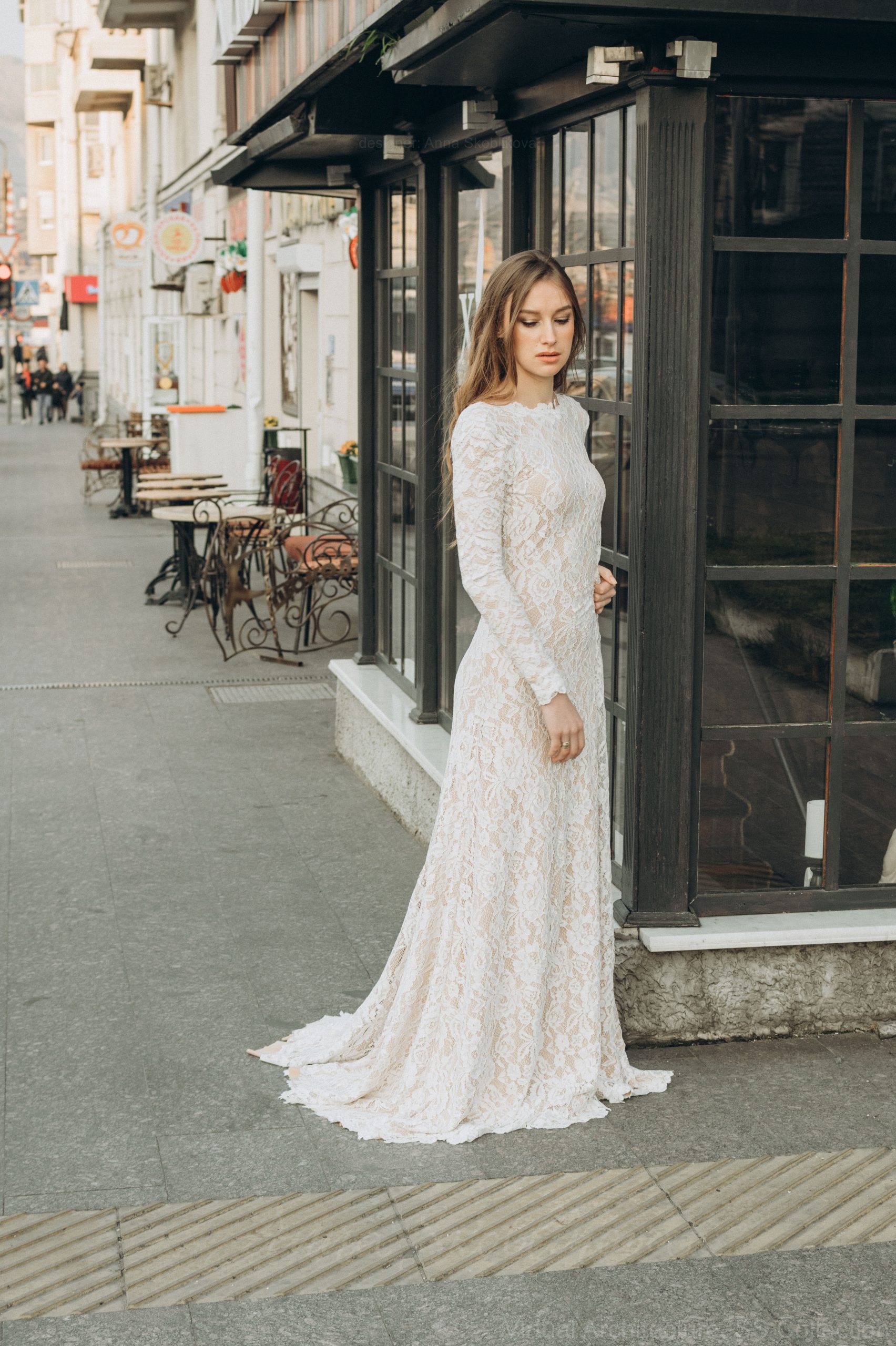 The dress has a train of 60 cm. A train up to 100 cm is possible.