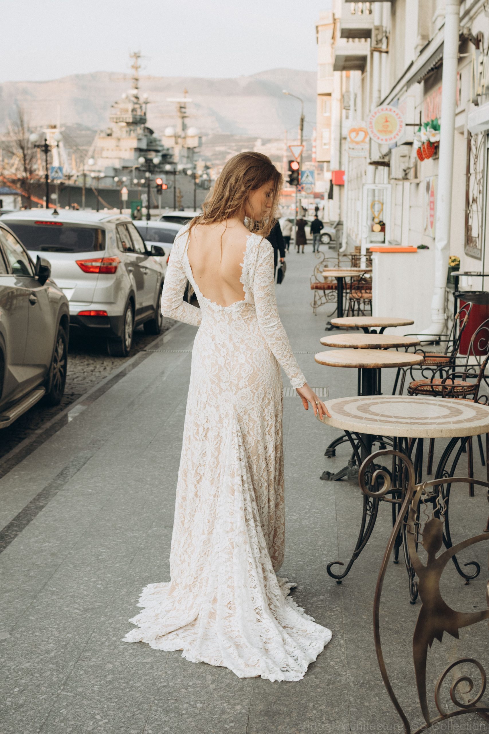 We would recommend complementing the wedding dress with a simple veil or understated hair accessories. This one-piece lace wedding dress can be embraced in a Western-themed wedding by pairing it with cowboy boots and a hat.