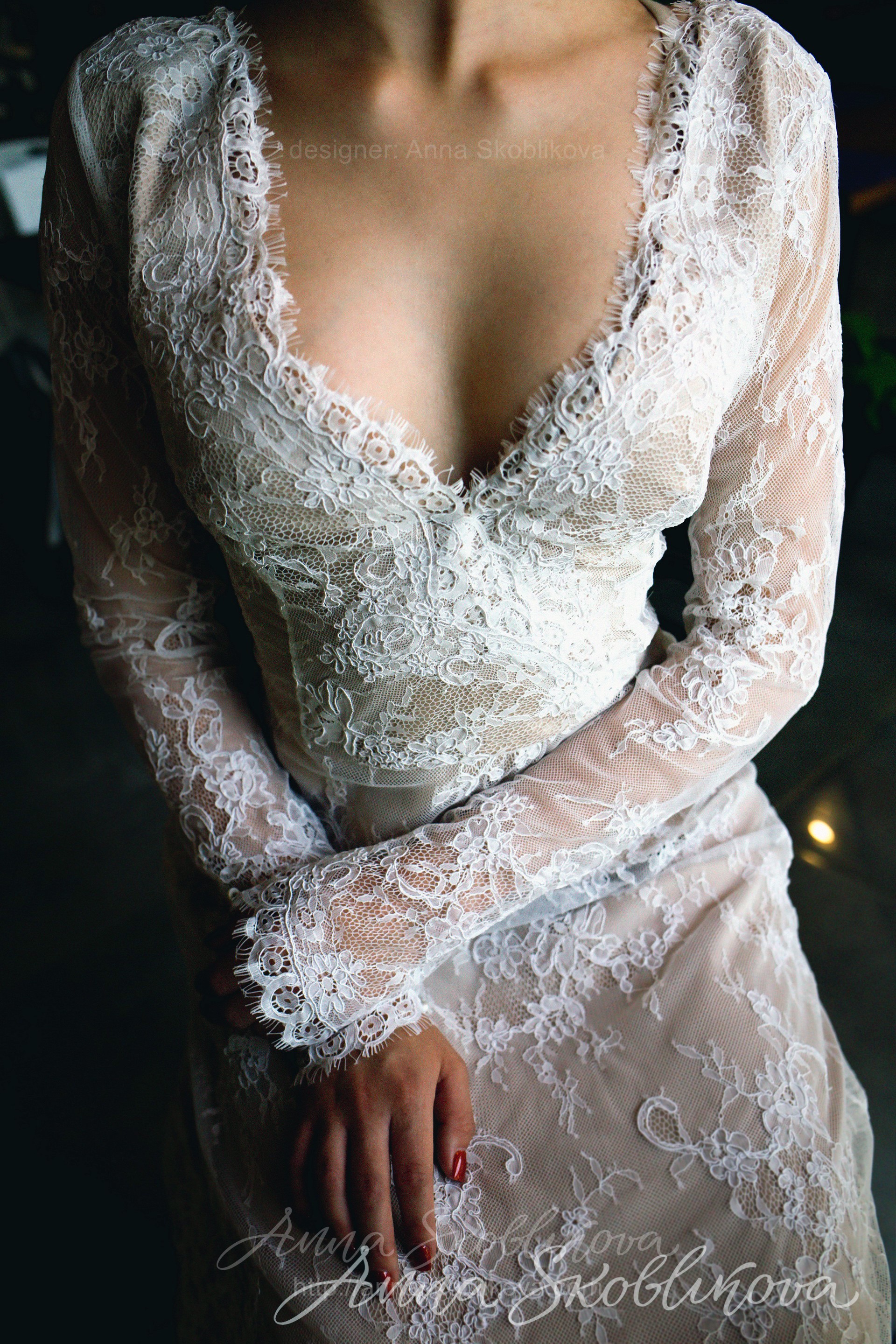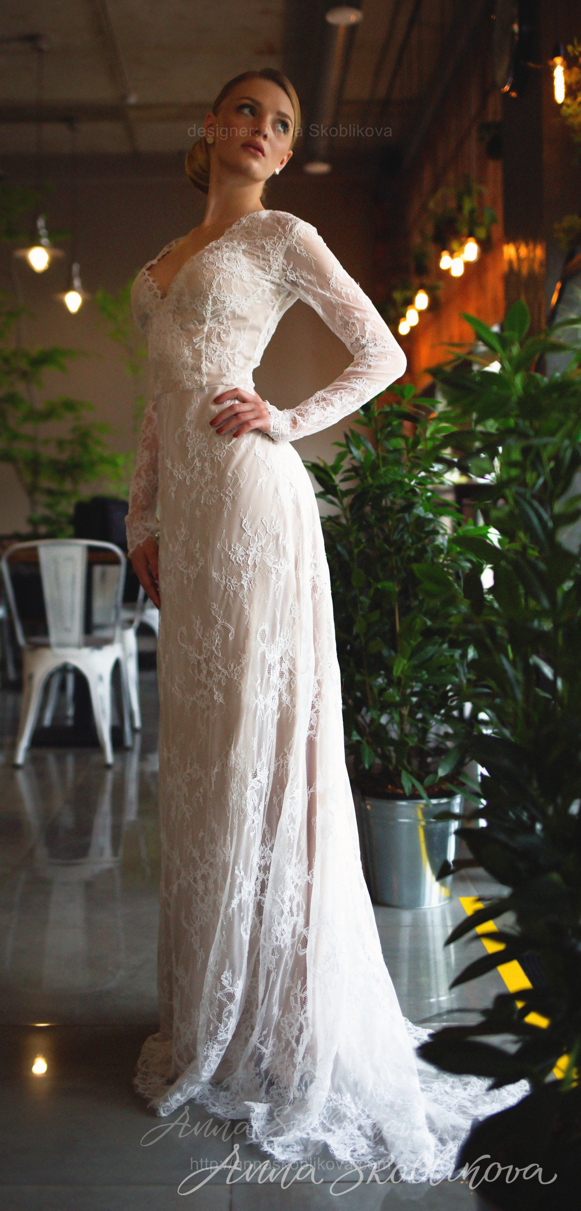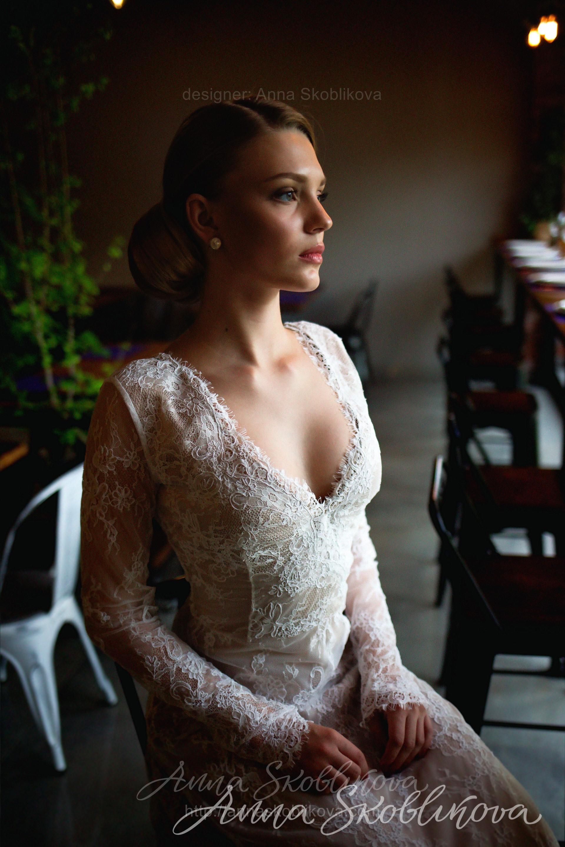 This wedding dress is a basic model, you can order your own one with any changes and re-works just to your taste (e.g. lace type, the color of the lining, depth of v-neck cut in front and back, train length).
