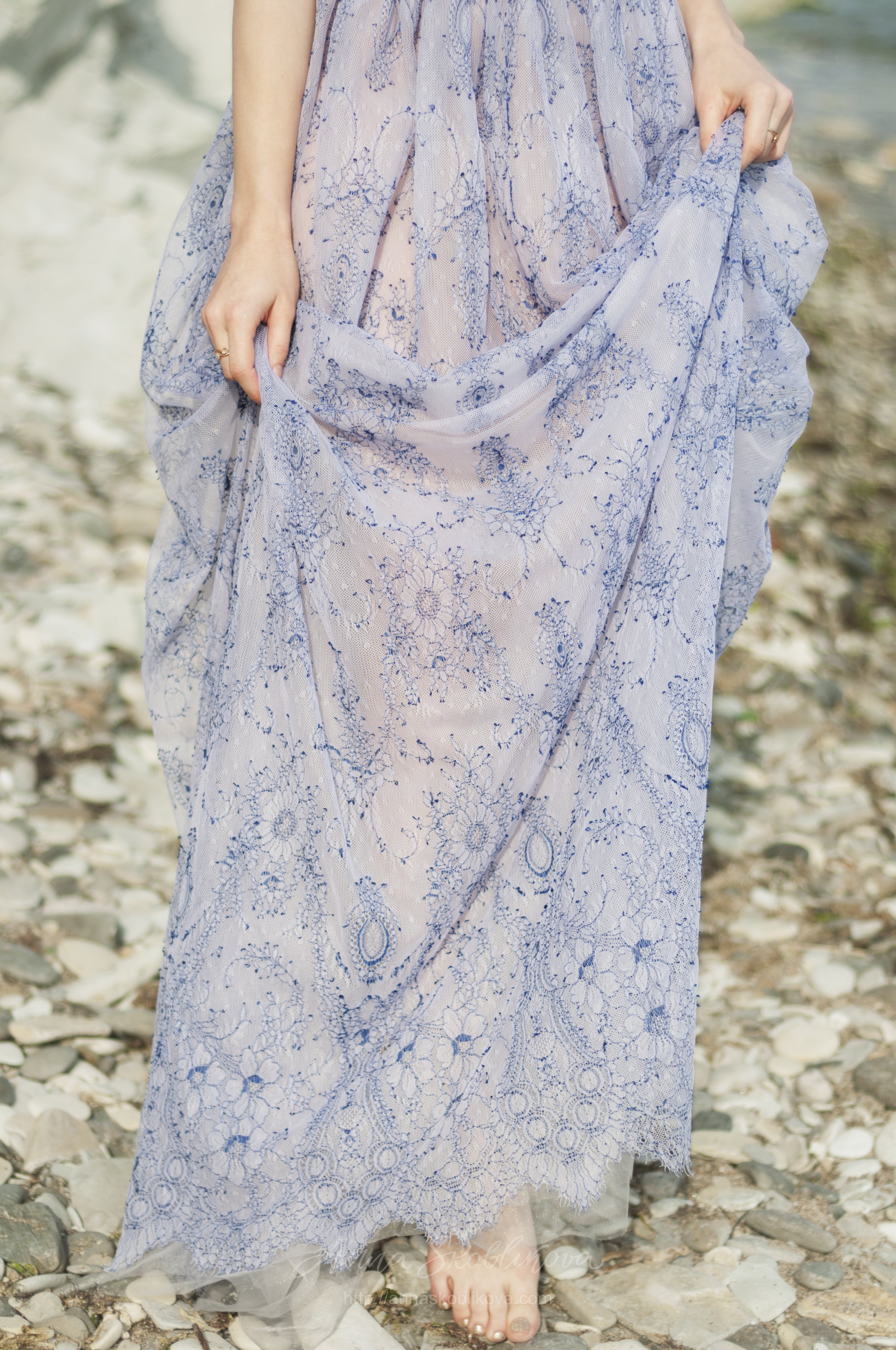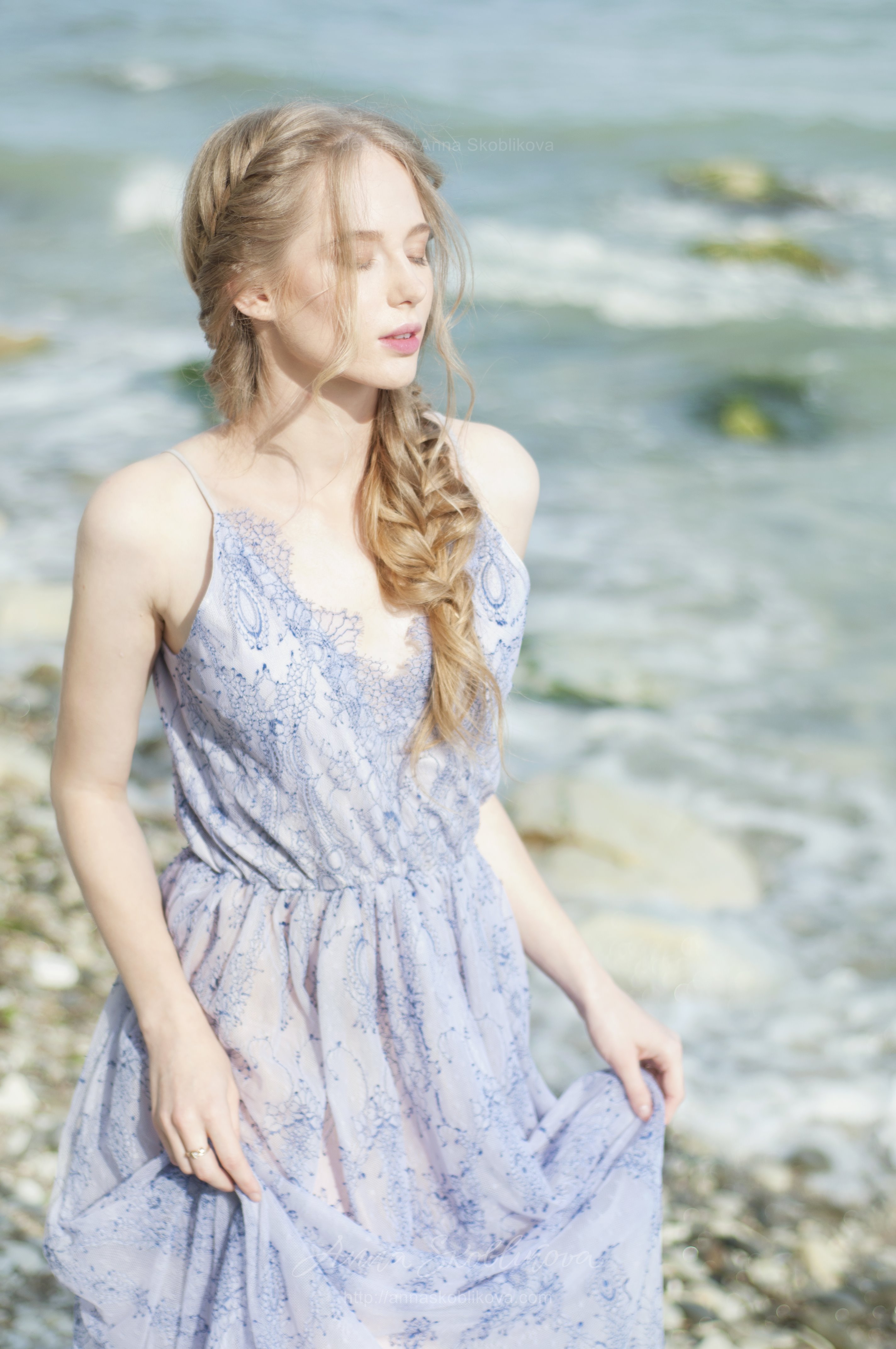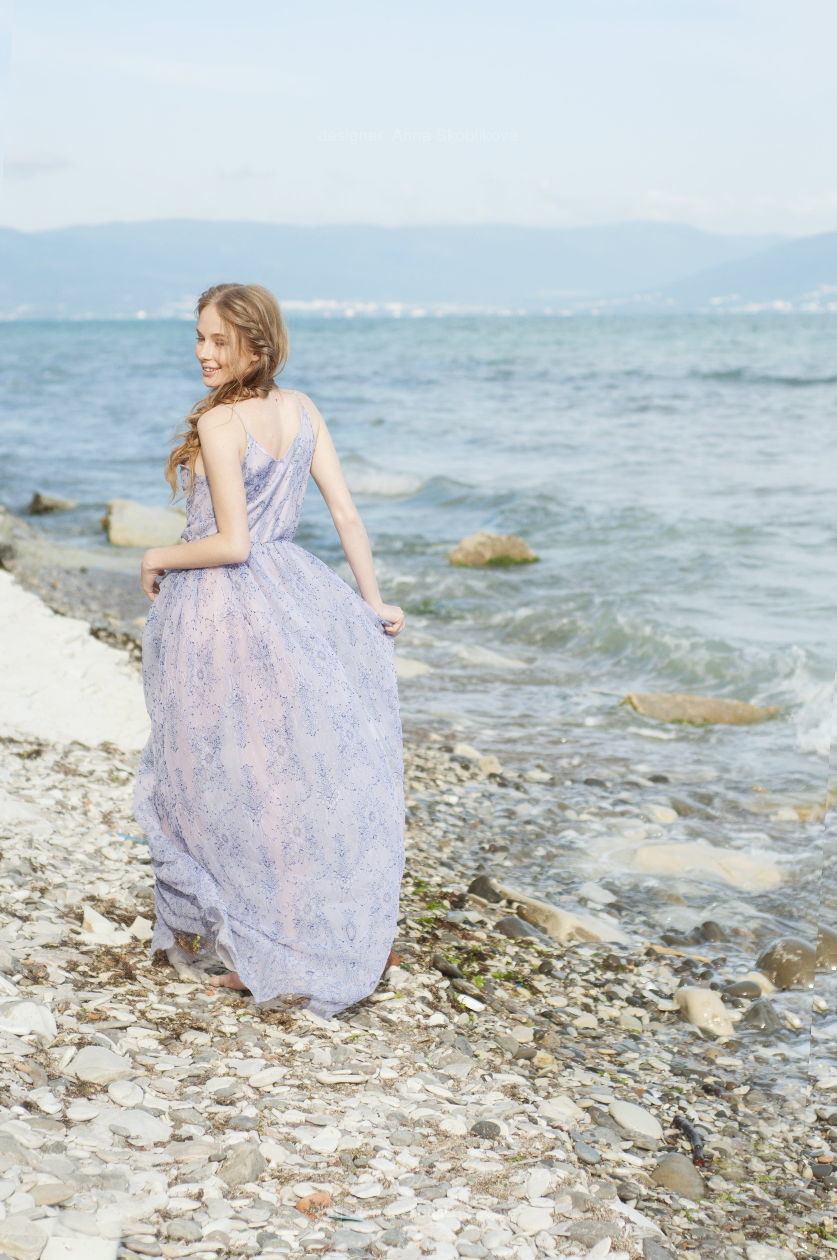 Lace lilac wedding dress on straps. It could fit as to the bride and to the bridesmaid as well. It`s made of lilac lace and gray lining. You could order this dress in powder, blue, milk and black color.