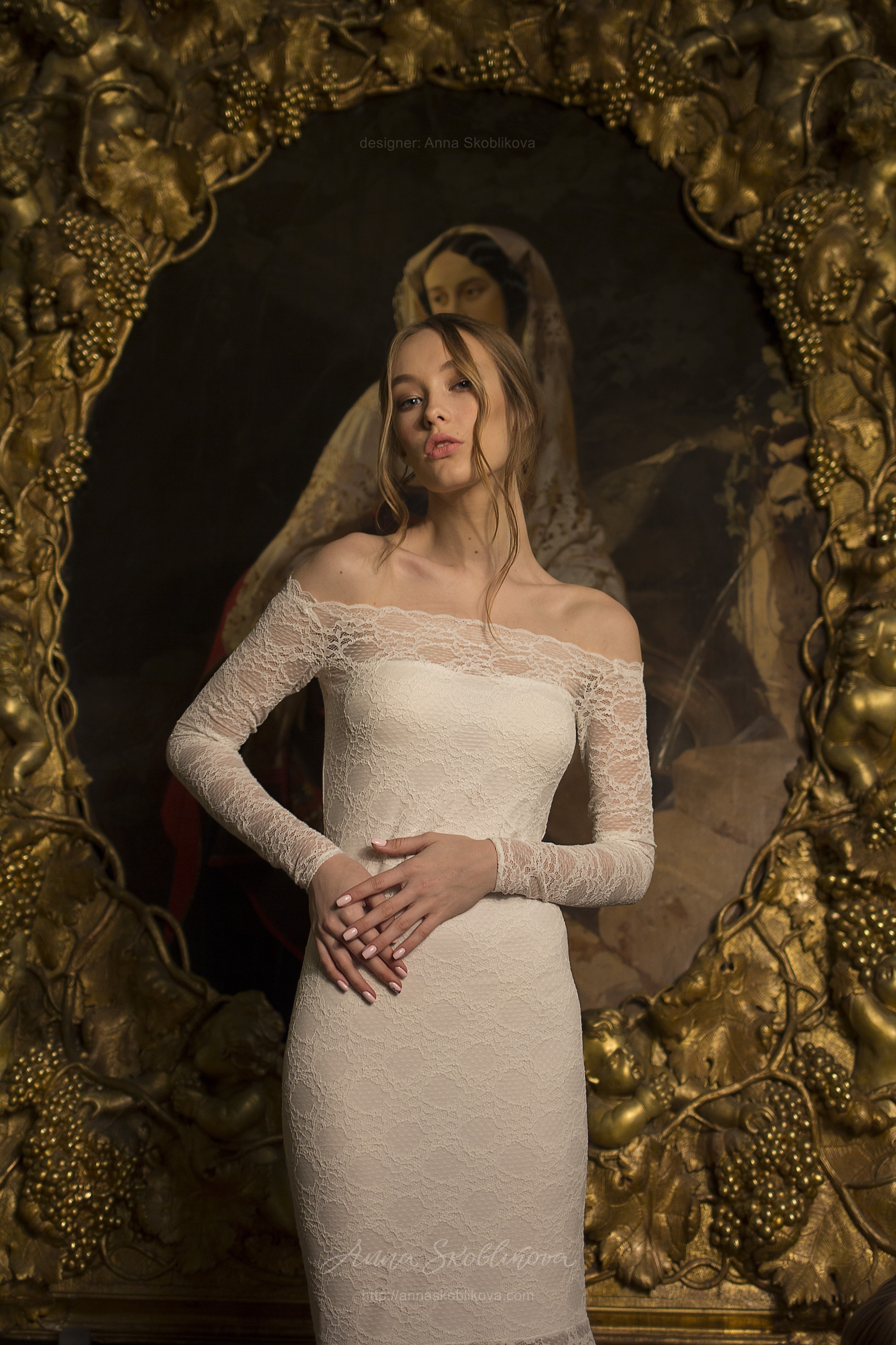 Due to its scattered unusual pattern the lace seems so tender and doesn’t distract attention from the dress silhouette itself.