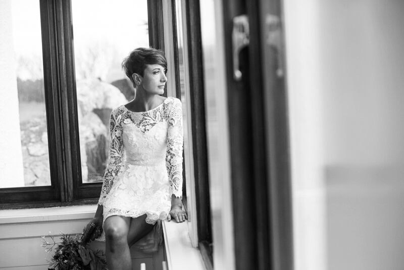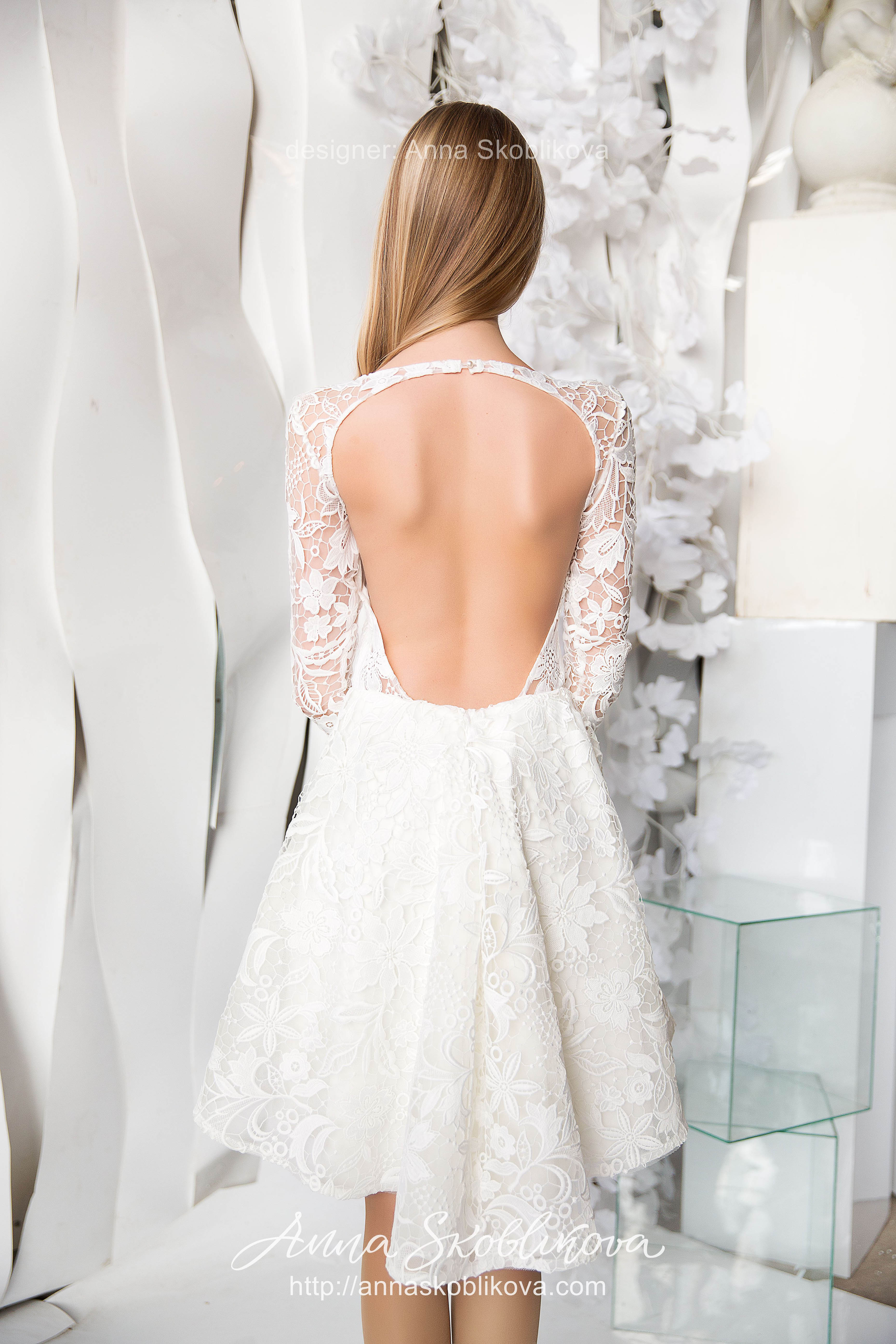 Coquettish open-back wedding dress tatted lace dress with a fluffy skirt.