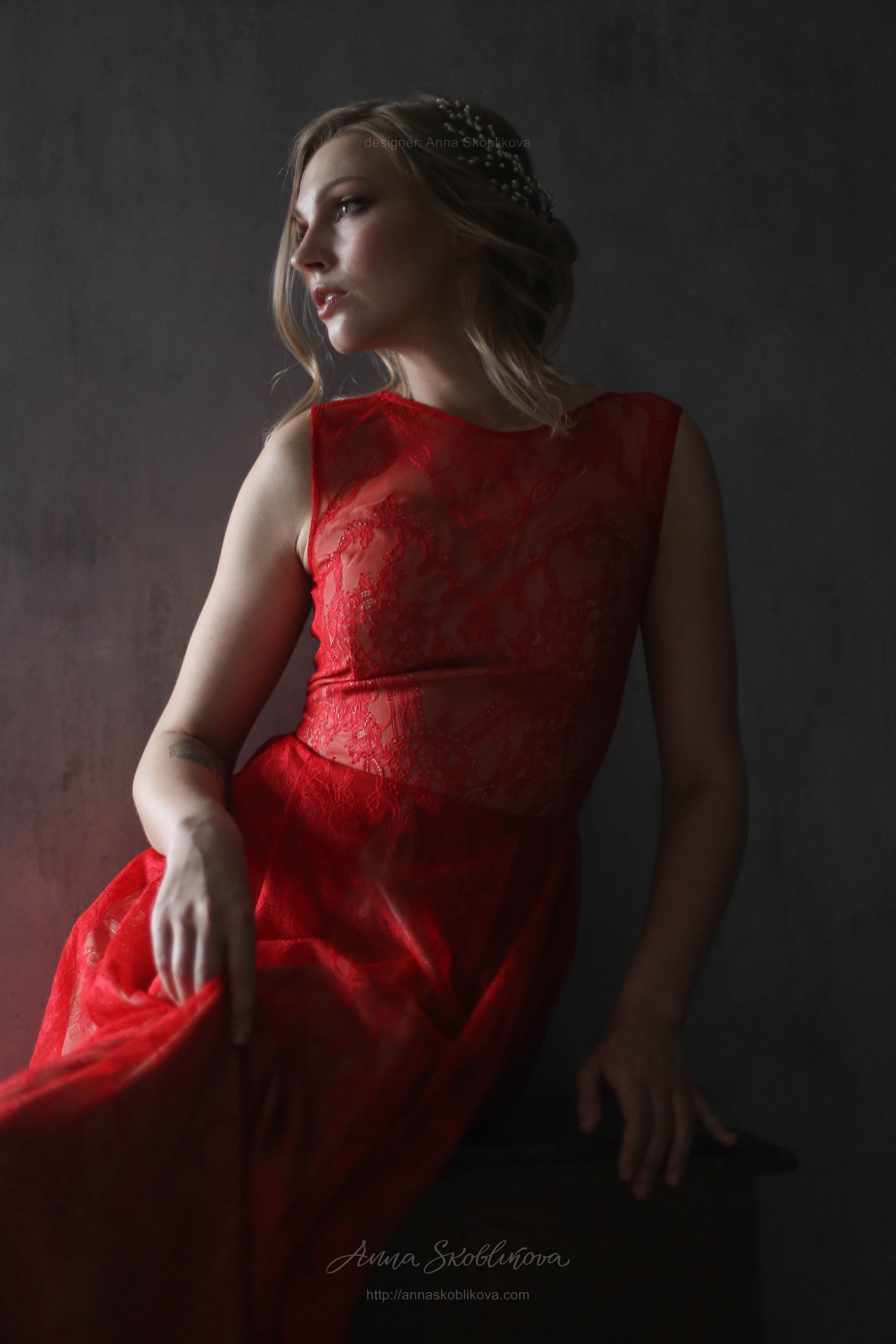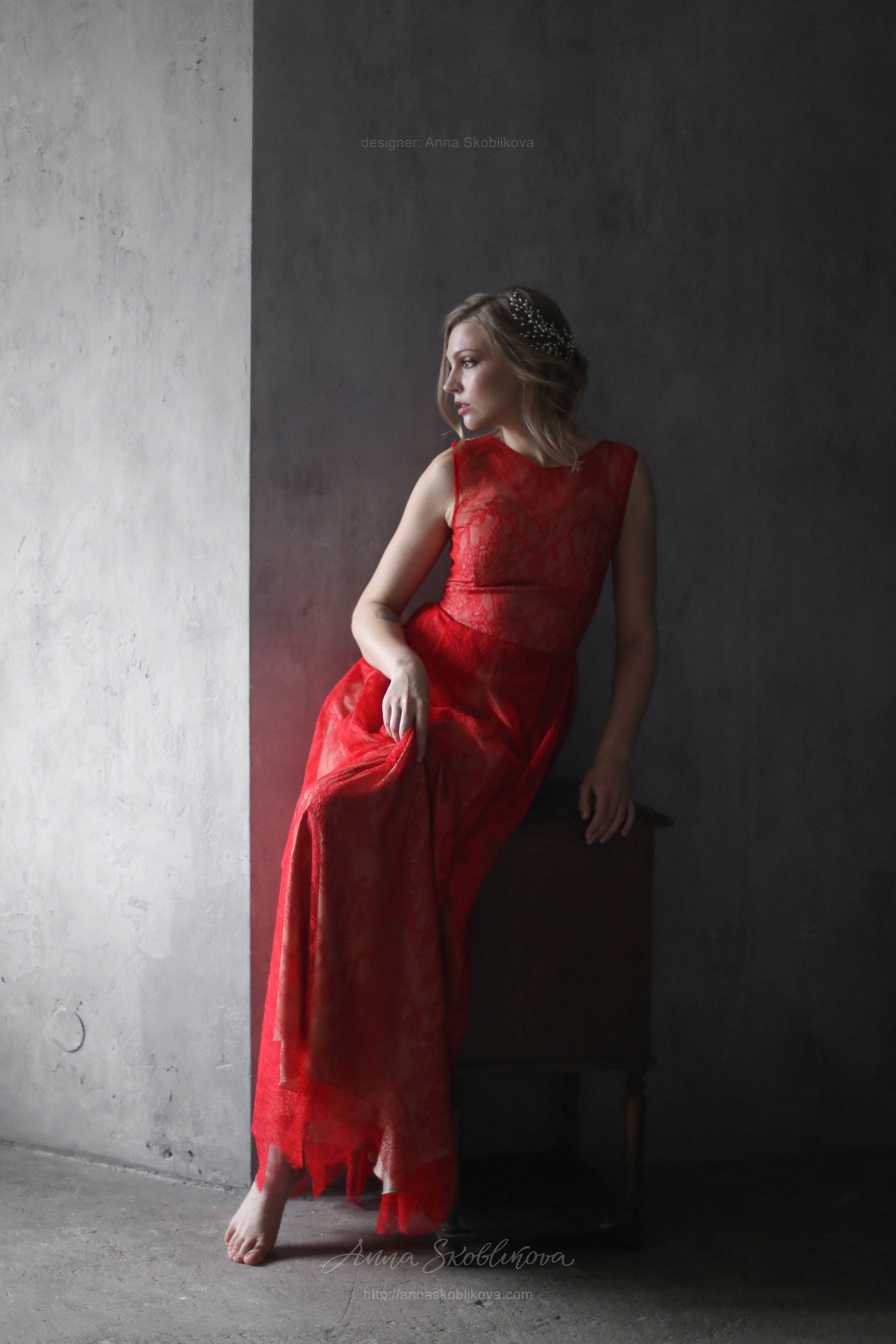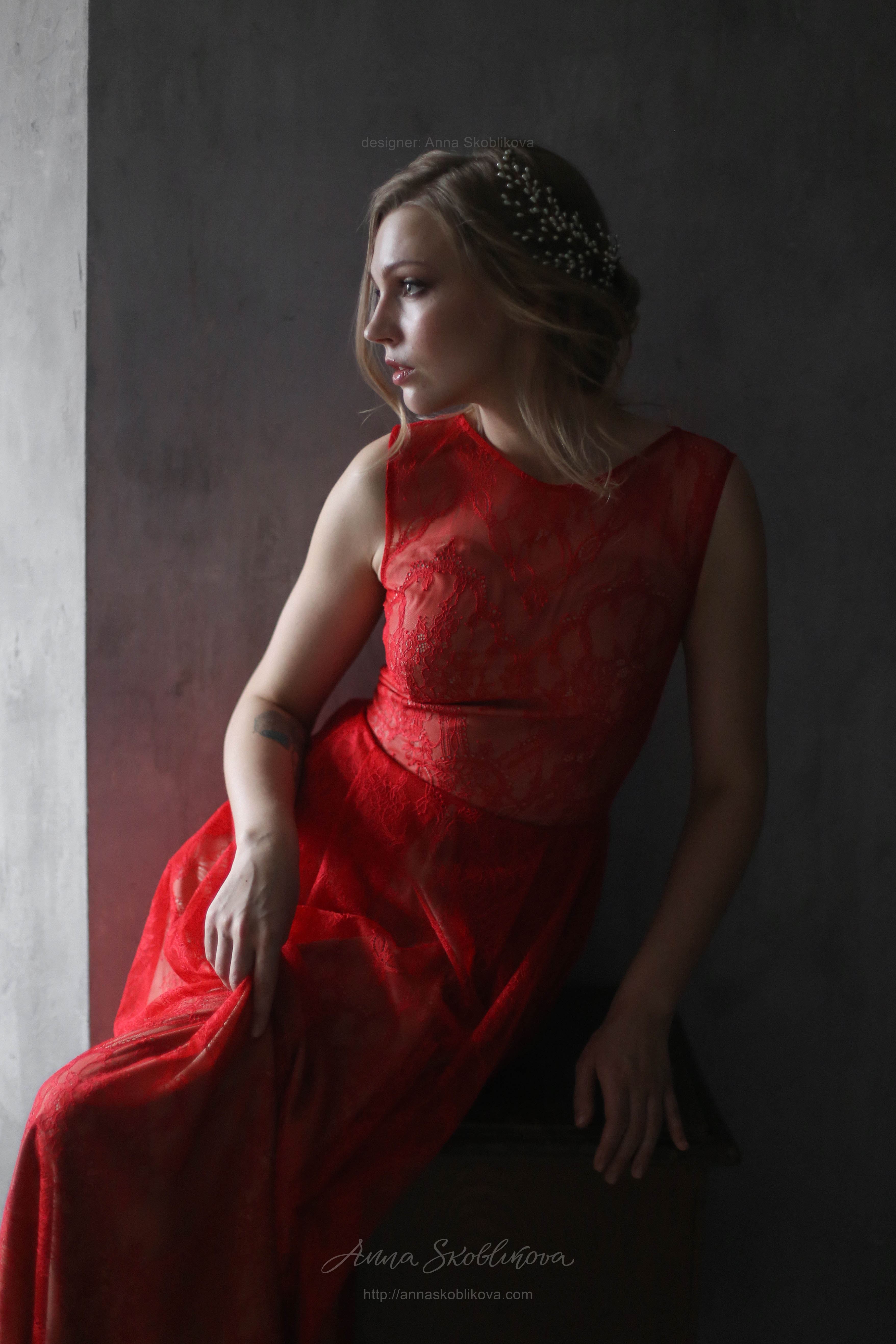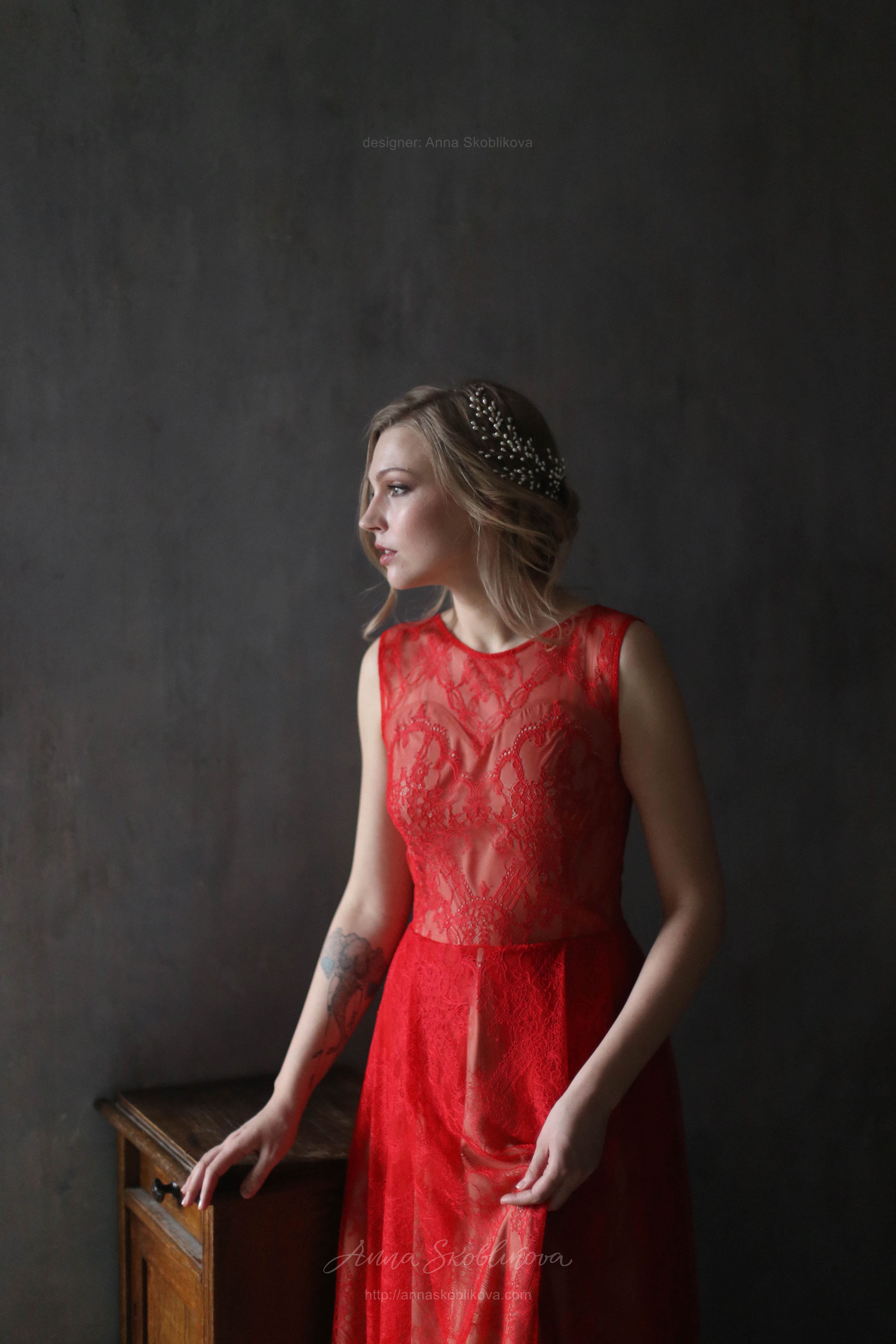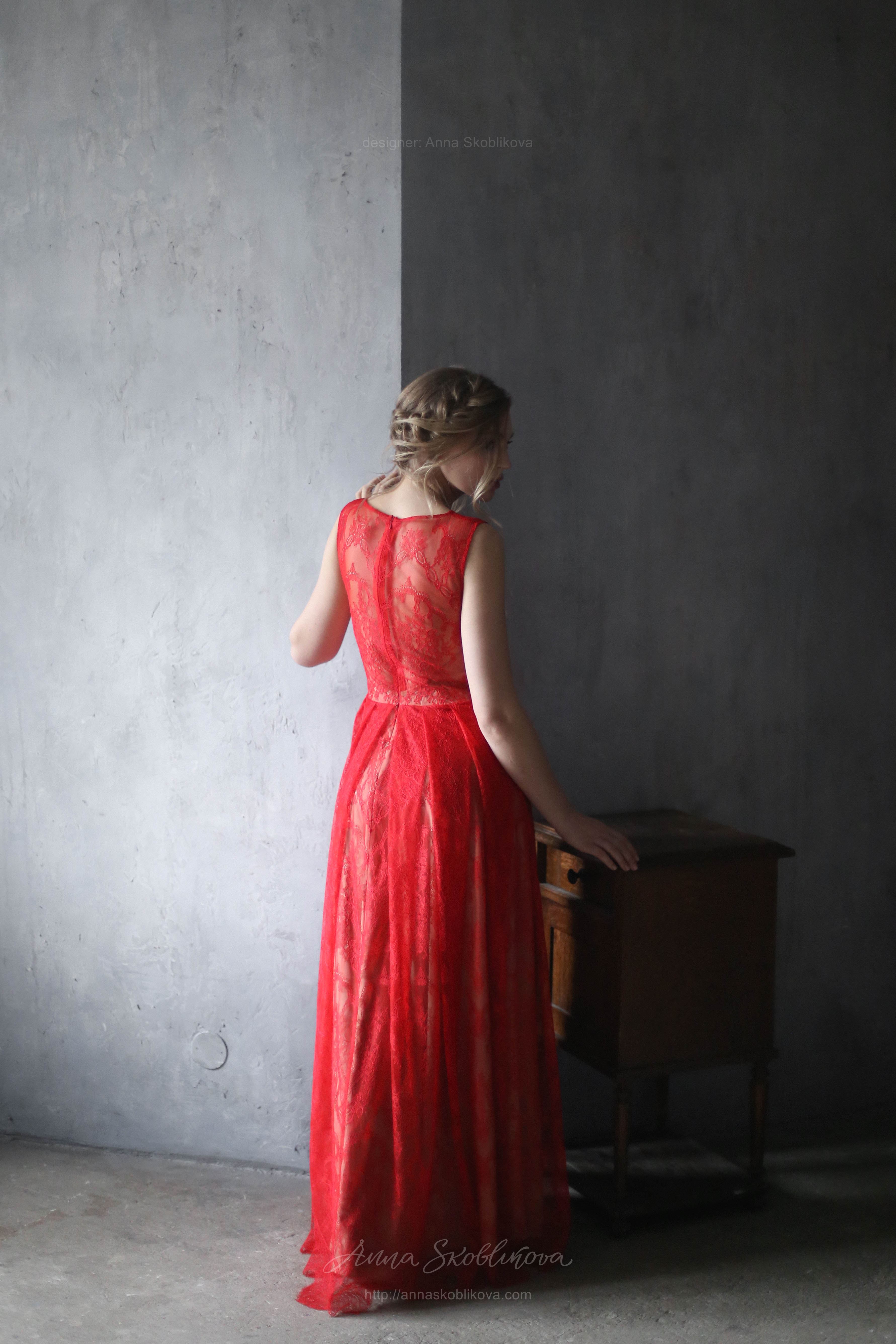 Red lace wedding dress
